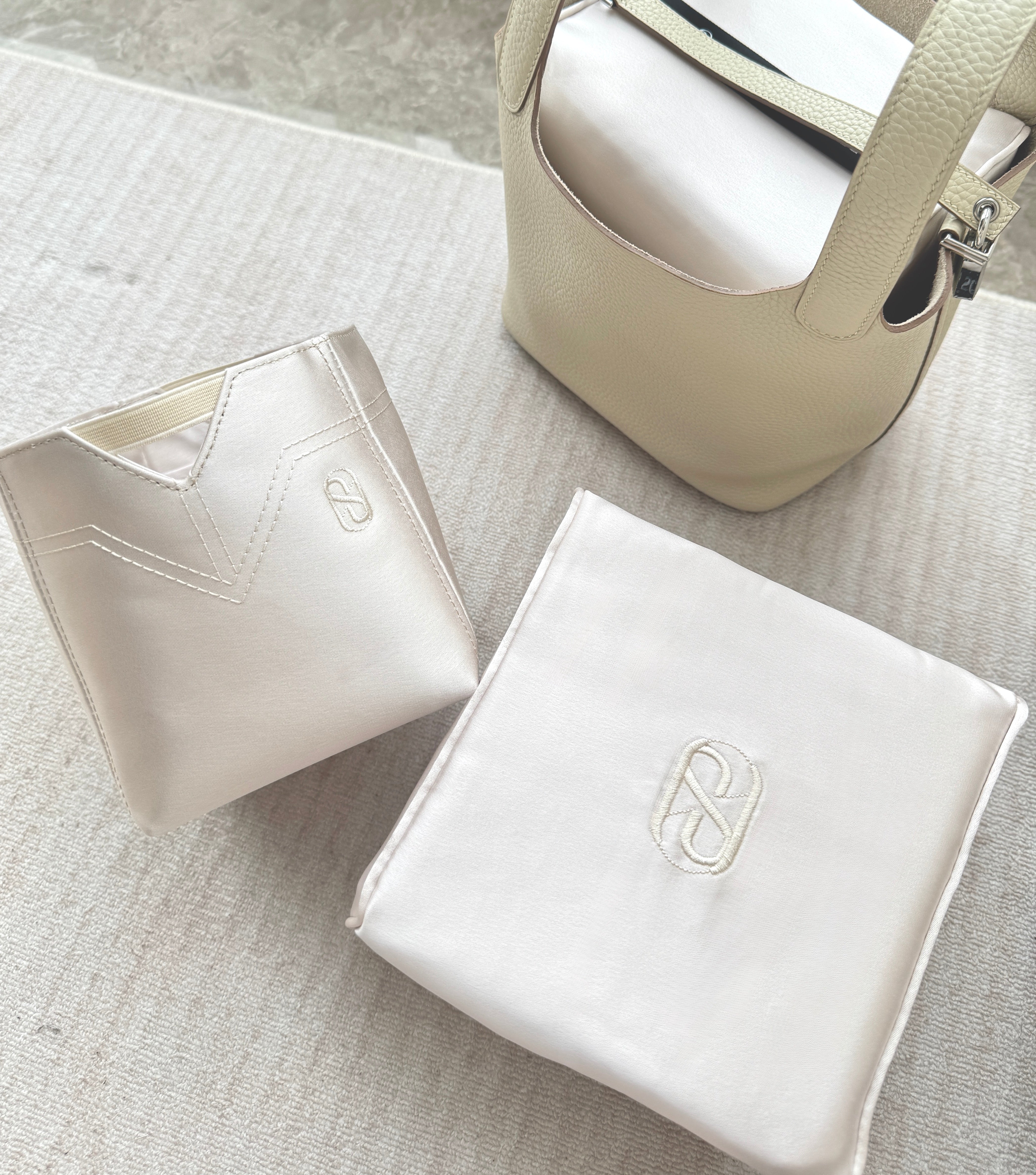 Elevate your handbag care with the SORTE Bag Pillow designed specifically for the Picotin 18. Crafted from a silk-like Naia™ fabric, this pillow offers a soft, shiny texture that complements the elegance of your bag.